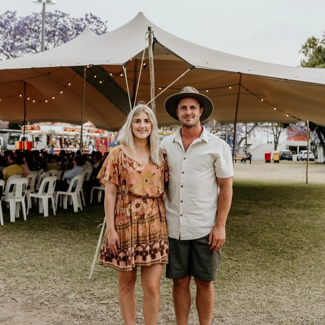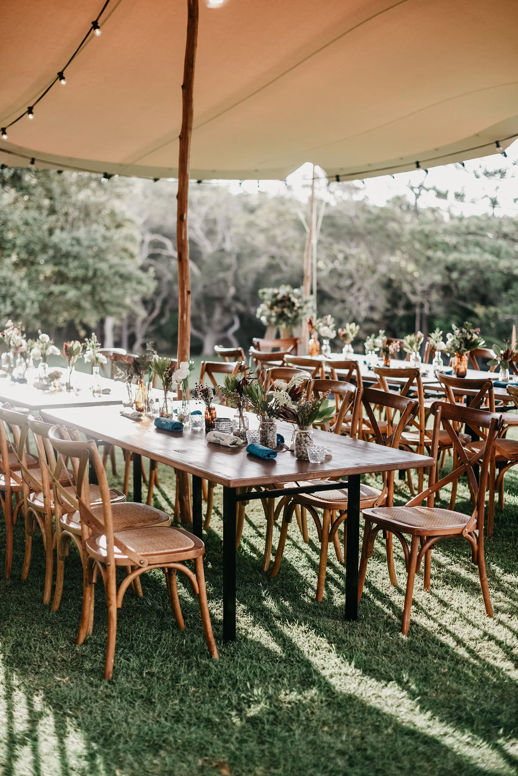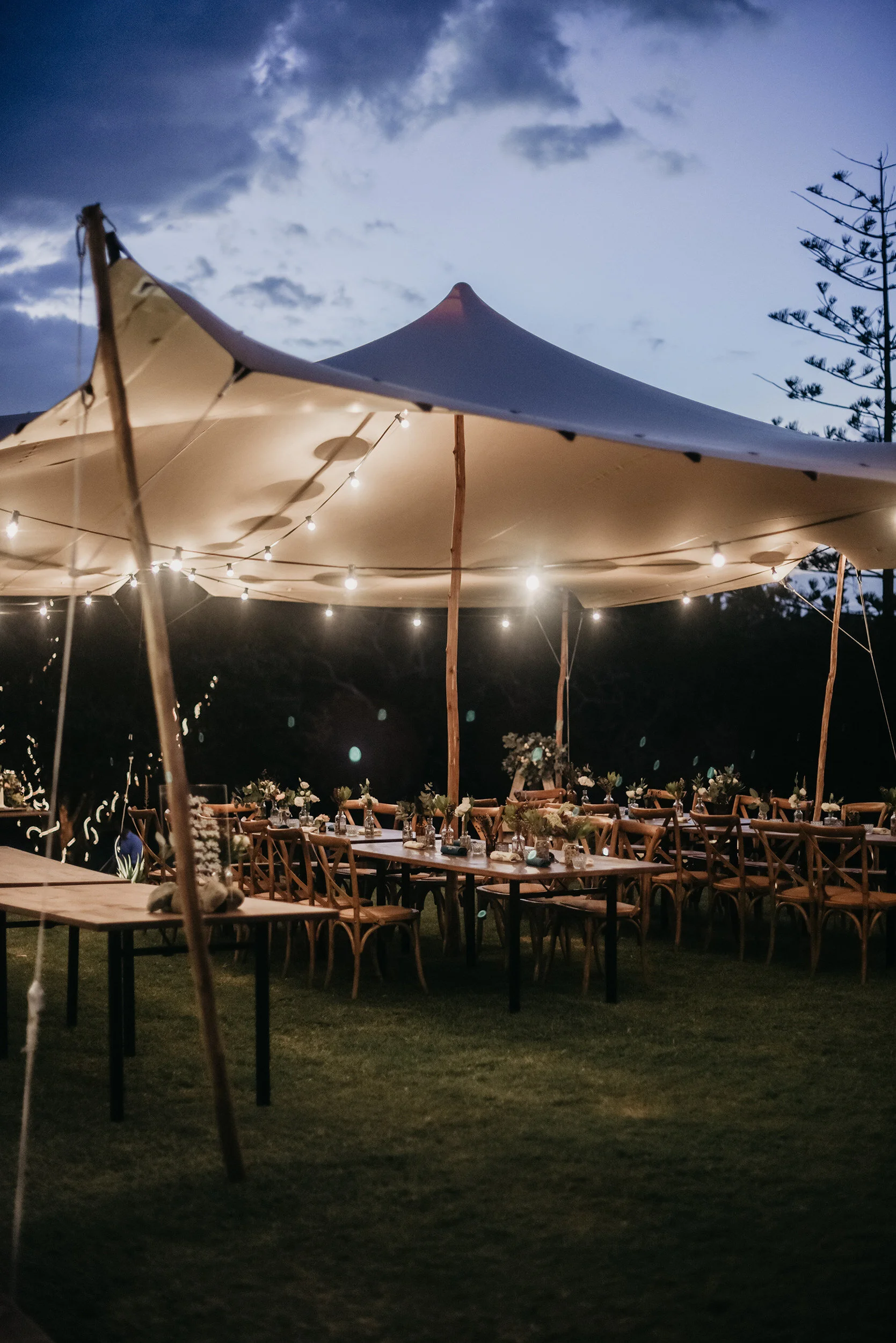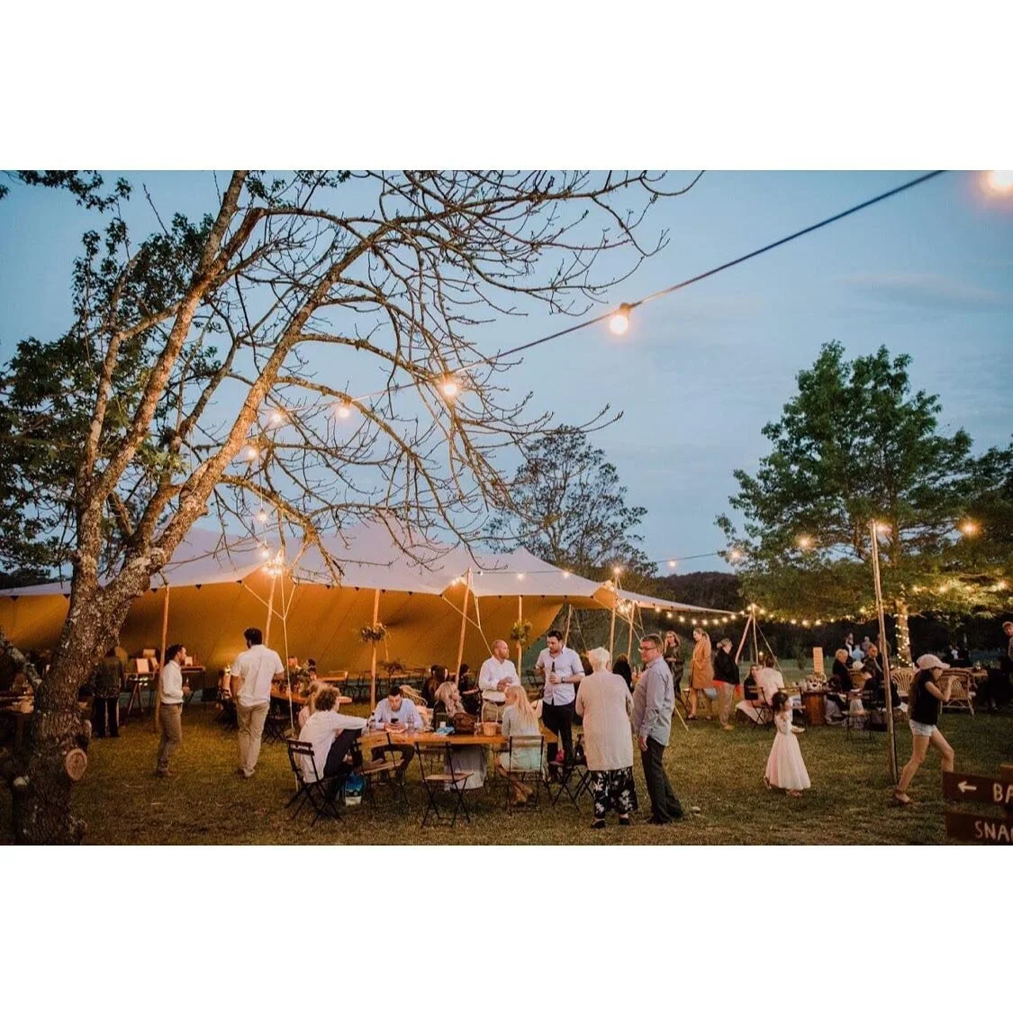 Create a warm ambiance with our festoon lighting, available as an addition to our Marquees.